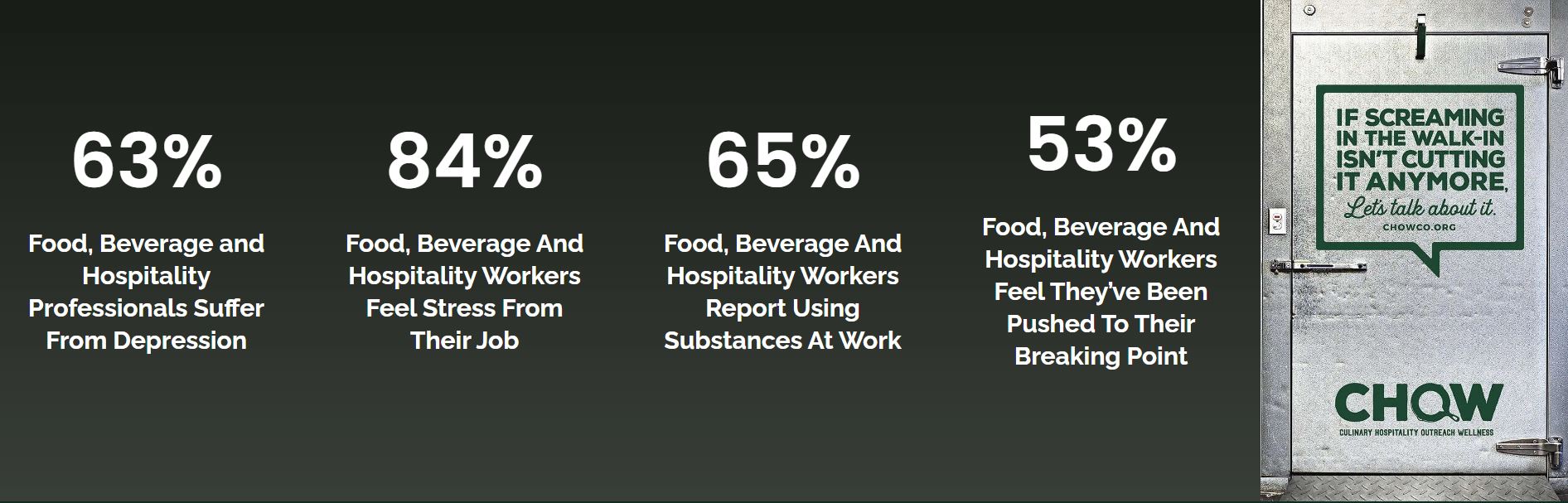 Culinary Hospitality Outreach and Wellness (CHOW) program focuses on providing support and resources for individuals in the hospitality industry who may be struggling with mental health issues, substance abuse, or other challenges. The CHOW program typically includes a range of services, such as mental health counseling, substance abuse treatment, nutritional counseling, and culinary training. The program is provided in a safe and supportive community setting (in-person or virtual), with the goal of helping individuals build connections with others who are going through similar challenges and share stories of their experiences, recovery, and improved mental health. They have an abundance of resources on their website in English and Spanish.